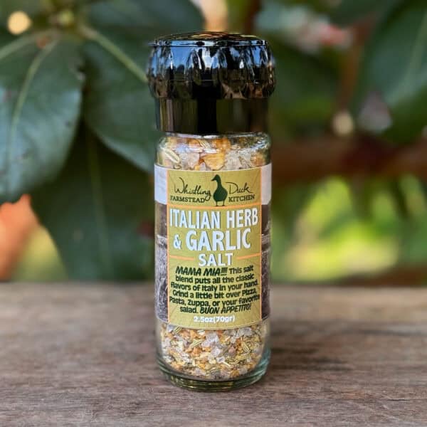 Whistling Duck Farm Italian Herb & Garlic Salt w/ Grinder Top – 2.5 oz