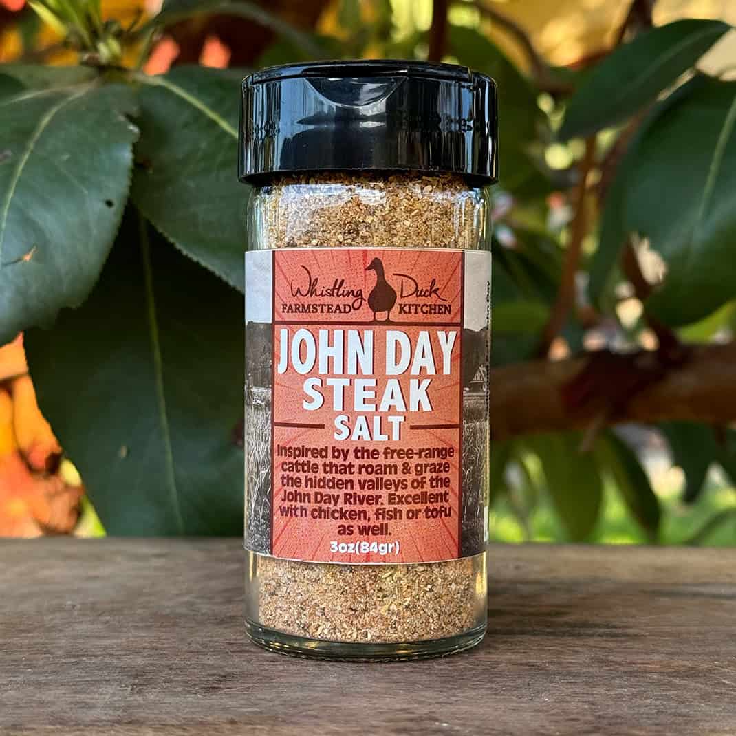 Whistling Duck Farm John Day Steak Salt is the ultimate steak salt! Inspired by the free-range cattle that roam & graze the hidden valleys of the John Day River. Excellent with chicken, fish or tofu as well.